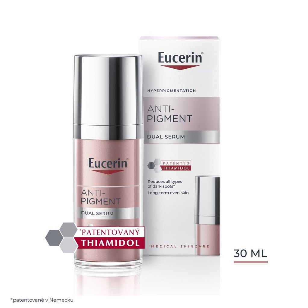 Eucerin® Anti-Pigment Sérum s duálnym účinkom účinne redukuje pigmentové škvrny a zabraňuje ich opakovanému výskytu.