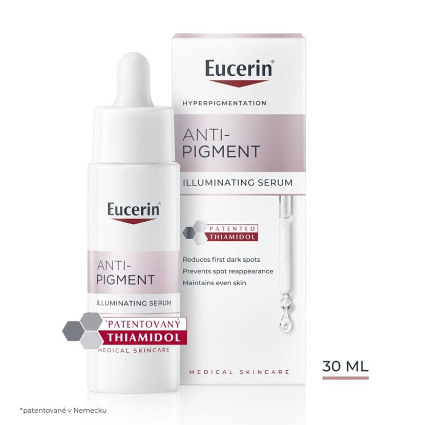 Eucerin Anti-Pigment Rozjasňujúce sérum obsahuje koncentrovanú kyselinu hyalurónovú, ktorá zlepšuje hydratáciu pleti. Pôsobí účinne pri použití samostatne, ako súčasť vašej súčasnej pravidelnej starostlivosti o pleť alebo spoločne s ďalšími výrobkami radu Eucerin Anti-Pigment.