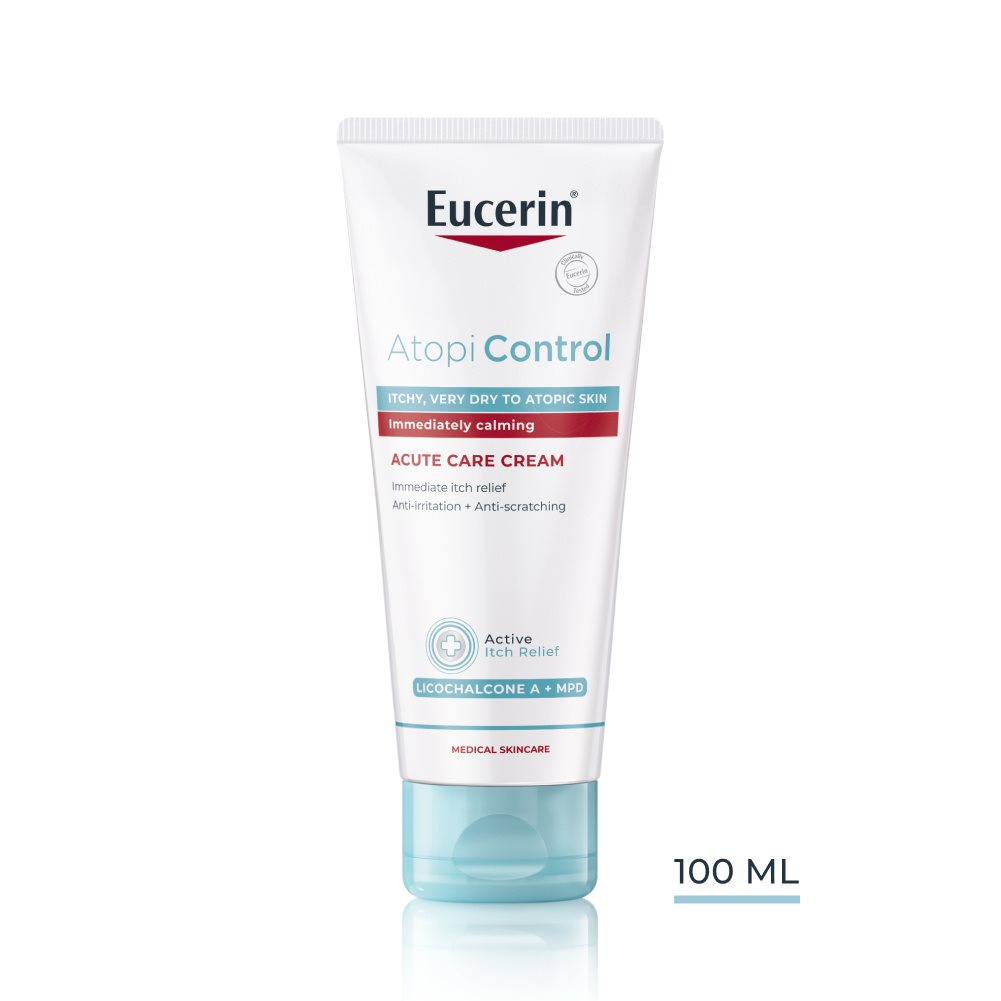 Eucerin AtopiControl Acute krém bol vyvinutý špeciálne tak, aby poskytoval upokojenie a intenzívnu starostlivosť pokožke počas akútneho vzplanutia atopickej dermatitídy a atopického ekzému. Krém obsahuje jedinečný komplex aktívnych zložiek – upokojujúci licochalcon A, antibakteriálny dekandiol a menthoxypropanediol (MPD) upokojujúci svrbenia vďaka chladivému účinku. Tento komplex, v kombinácii s vysokou koncentráciou ceramidov, posilňuje kožnú bariéru, zmierňuje suchosť a upokojuje od svrbenia na zmyslovej úrovni, čím znižuje nutkanie škriabať pokožku.