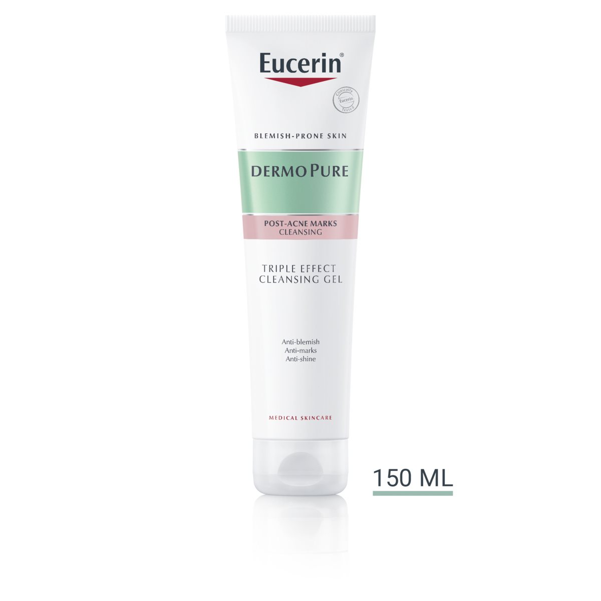 Eucerin DermoPure Exfoliačný čistiaci gél s trojitým účinkom a 2 % kyselinou salicylovou vám pomôže definitívne poraziť škvrny a stopy po akné vďaka 3 kľúčovým faktorom: