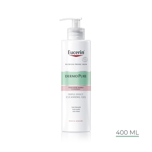 Eucerin DermoPure Čistiaci gél s trojitým účinkom a 2 % kyselinou salicylovou vám pomôže konečne odstrániť škvrny a stopy po akné vďaka 3 kľúčovým faktorom: