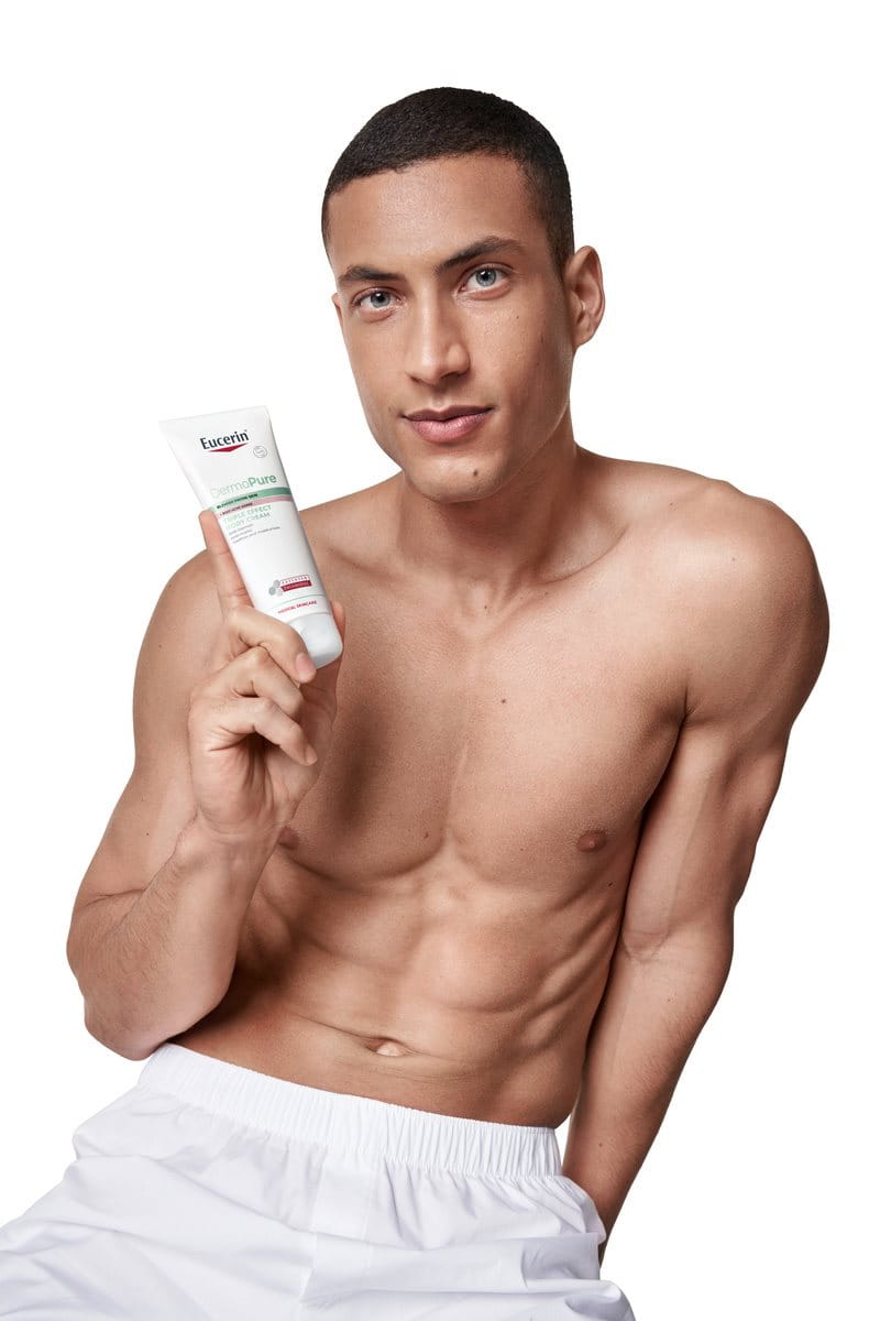 Na tvár odporúčame čistiť pokožku DermoPure Exfoliačným čistiacim gélom s trojitým účinkom, potom naniesť sérum DermoPure Sérum s trojitým účinkom a doplniť o hydratačný krém pre pleť náchylnú k nedokonalostiam, ako je DermoPure Ochranná emulzia s SPF 30 alebo DermoPure Zmatňujúca emulzia.