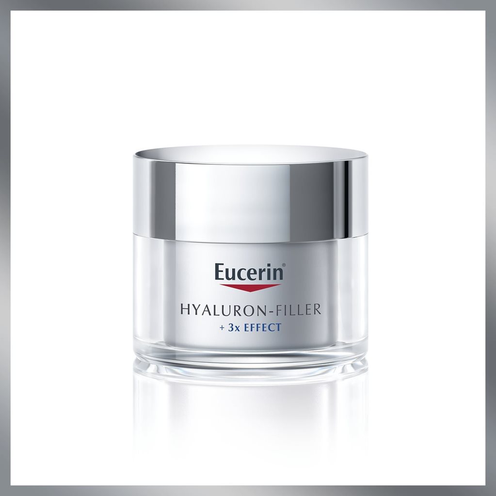 Eucerin Hyaluron-Filler Denný krém SPF 15 bojuje s prvými príznakmi starnutia suchej pleti. Viditeľne vyhladzuje jemné linky i hlboké vrásky, a stará sa tak o mladší vzhľad pleti. Poskytuje pleti účinnú ochranu proti predčasnému starnutiu spôsobenému UV žiarením a proti prehlbovaniu vrások a zároveň ju chráni pred voľnými radikálmi.