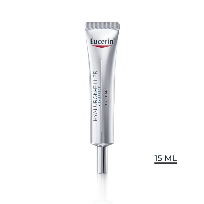 Eucerin Hyaluron-Filler +3x Effect Očný krém SPF 15 viditeľne redukuje jemné linky a vrásky. Jeho zloženie 3x EFFECT funguje tromi spôsobmi: vypĺňa vrásky pomocou vysokomolekulárnej a nízkomolekulárnej kyseliny hyalurónovej, stimuluje vlastnú produkciu kyseliny hyalurónovej pomocou glycín saponínu a pomáha chrániť pred predčasným starnutím. Zloženie bez parfumácie sa rýchlo vstrebáva a je oftalmologicky testované, takže je ideálne na každodenné použitie, a to aj pod make-up.