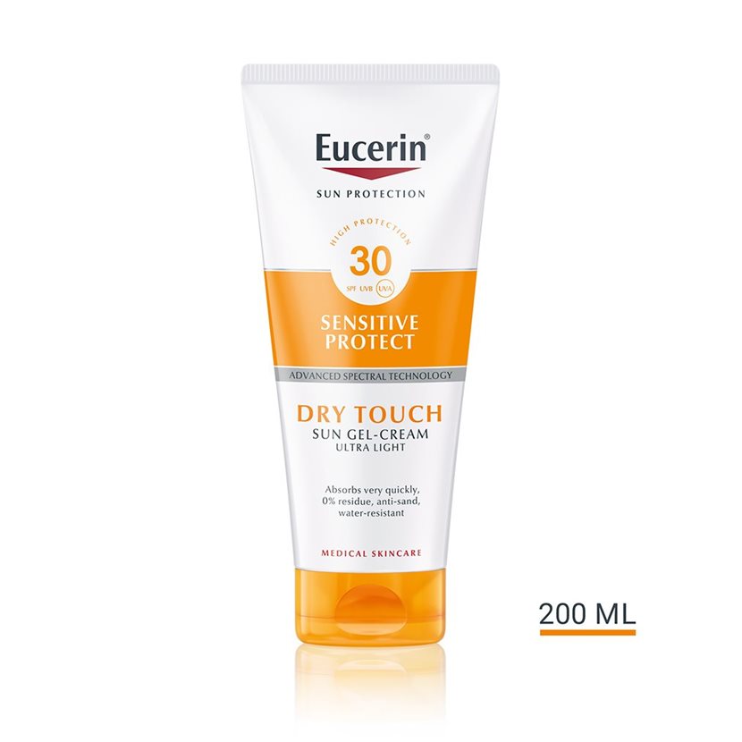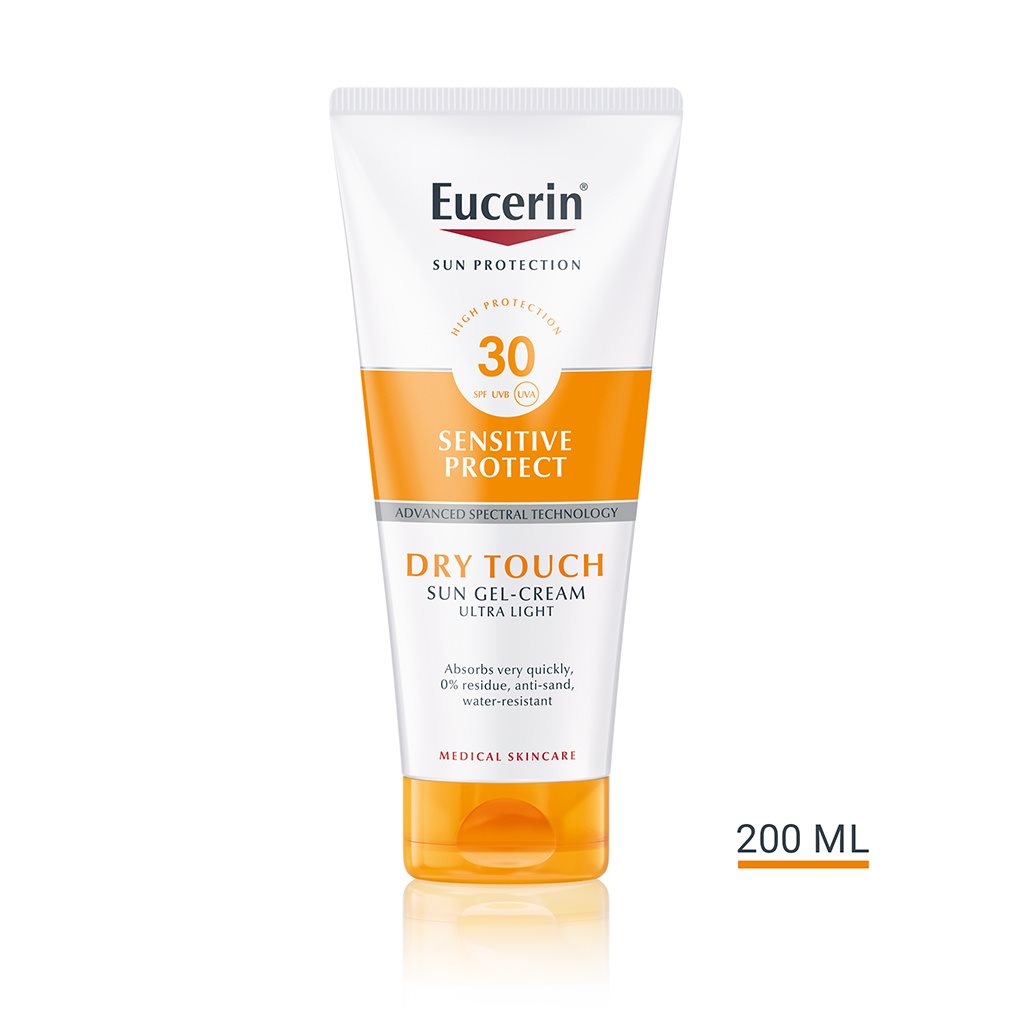 Krémový gél na opaľovanie Dry Touch Oil Control SPF 30 je ultraľahký opaľovací prípravok na pokožku tela. Klinické a dermatologické testy preukázali jeho vhodnosť pre všetky typy pleti vrátane citlivej, mastnej a aknóznej. Tento opaľovací krémový gél ponúka vysokú ochranu proti UV žiareniu vďaka UVA a UVB filtrom spĺňajúcim prísne štandardy definované asociáciou Cosmetics Europe, pričom stupeň ochrany proti UVA žiareniu presahuje minimálne odporúčania stanovené EÚ. Technológia Advanced Spectral Technology vyvinutá značkou Eucerin kombinuje širokopásmové, fotostabilné UVA/UVB filtre s účinkami licochalconu A, ktorý neutralizuje voľné radikály vznikajúce v pokožke pôsobením UV žiarenia a vysokoenergetického viditeľného svetla. Obsahuje tiež kyselinu glycyrrhetinovú, ktorá podporuje vlastné mechanizmy pokožky na opravu DNA a vďaka technológii Oil Control so zmatňujúcimi pigmentmi zanecháva pokožku okamžite suchú na dotyk.
