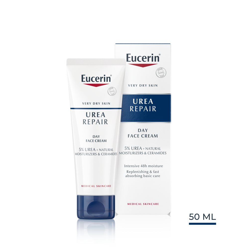 Všeobecne platí, že vaša tvár je vystavovaná príčinám suchej pokožky, ako je slnko, vietor a umývacie prostriedky, oveľa častejšie ako zvyšok tela, a preto potrebuje častú hydratáciu ako prevenciu príznakov suchej pokožky, ako je svrbenie, začervenanie, olupovanie a podráždenie. Eucerin Urea Repair Denný krém na tvár obsahuje kľúčové zložky, ktoré dokážu uzamknúť vlhkosť v pokožke pre dlhotrvajúcu hydratáciu. Prečítajte si viac o suchej pleti tu.
